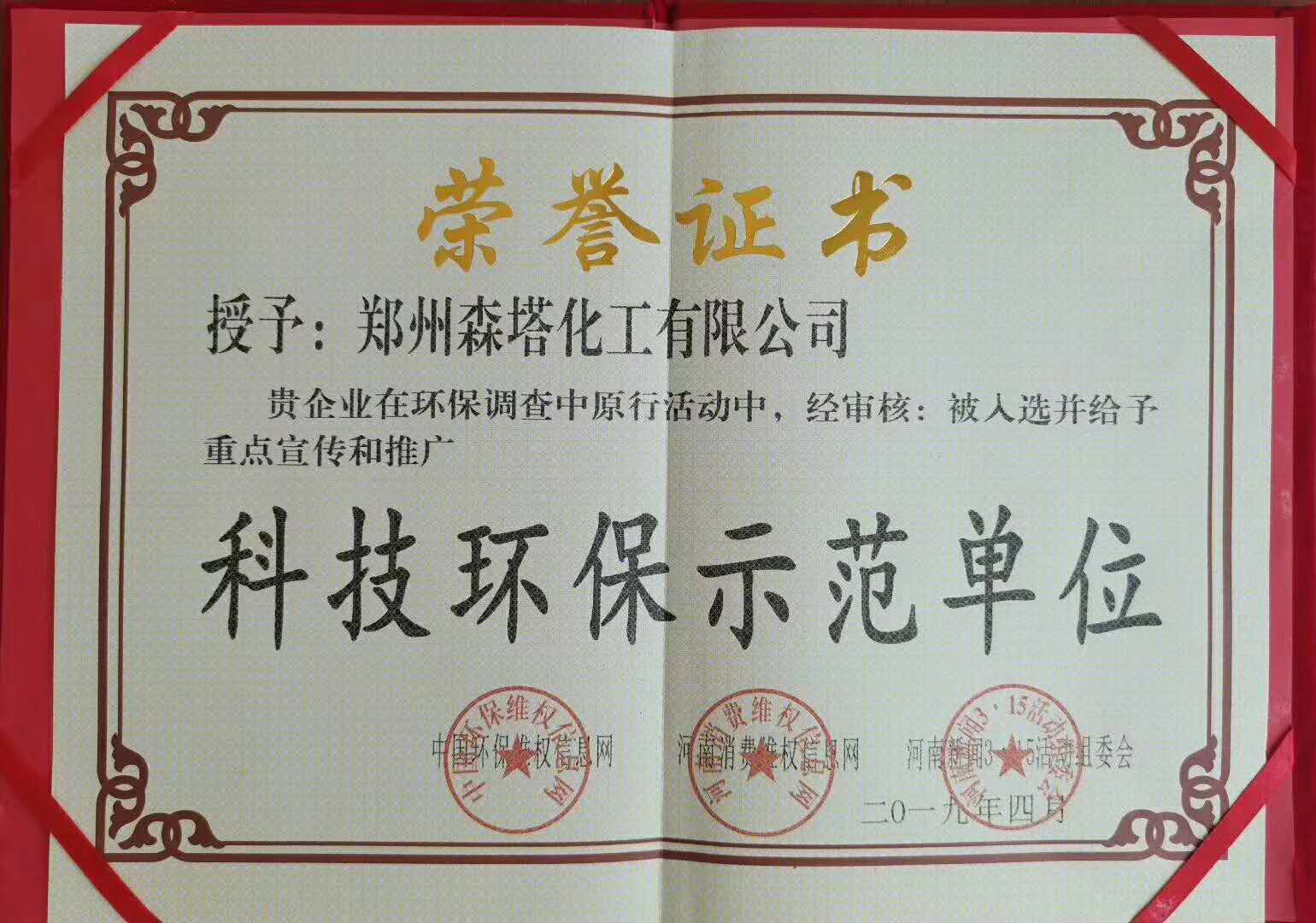 熱烈祝賀鄭州森塔化工有限公司被評選為科技環(huán)保示范單位